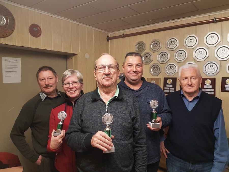 v. li.: 1. Platz Heinz-Wilhelm Müller, 1. Platz Elke Dürkop, Vorsitzender Reinhold Wrieske, 1. Platz Bernd Küssner